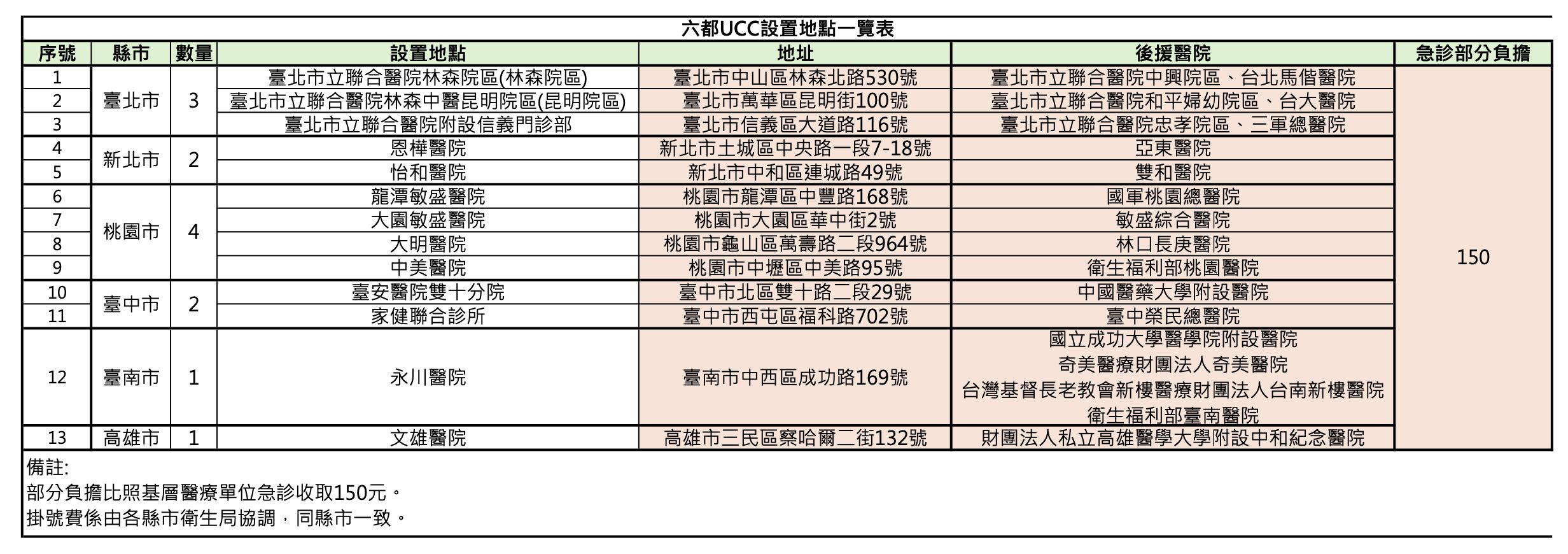 ▲六都UCC設置地點一覽表。(圖/健保署提供)*點圖放大