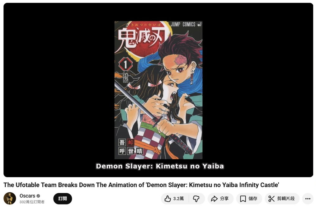 日本動畫片《劇場版「鬼滅之刃」無限城篇 第一章 猗窩座再襲》在全球各地都創下高票房,尤其片中無限城、角色招數的作畫精緻度皆獲得各界盛讚。而該片在日本上映第178天,製作公司ufotable首度公開幕後製作影片,並且在美國奧斯卡官方YouTube頻道上線。其中ufotable以「從每一格畫面開始手繪」、「壓倒性低效率」令大眾震驚於製作團隊的堅持。